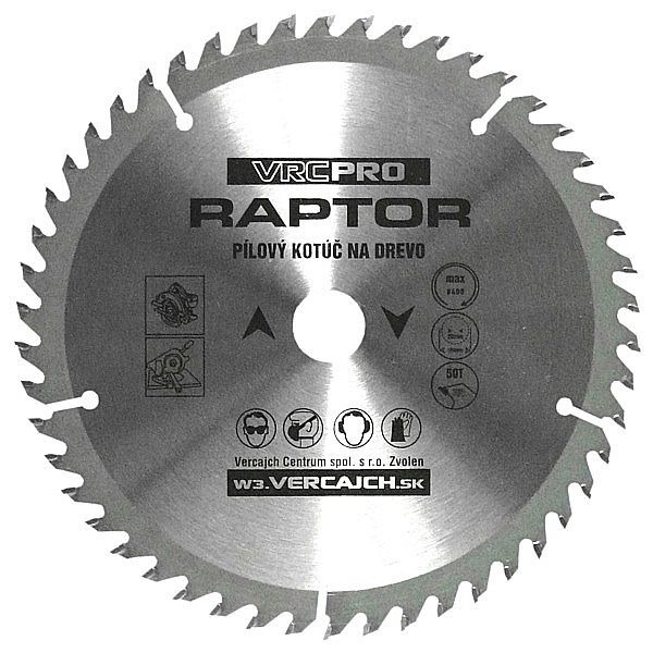 Pílové kotúče VRCPRO Raptor sú určené na rezanie dreva a drevotrieskových – laminovaných materiálov. Sú osadené tvrdokovovými TK plátkami veľmi dobrej kvality, ktoré spĺňajú všetky parametre podľa predpísaných noriem. Tento kotúč znesie zaťaženie pri práci remeselníkov.