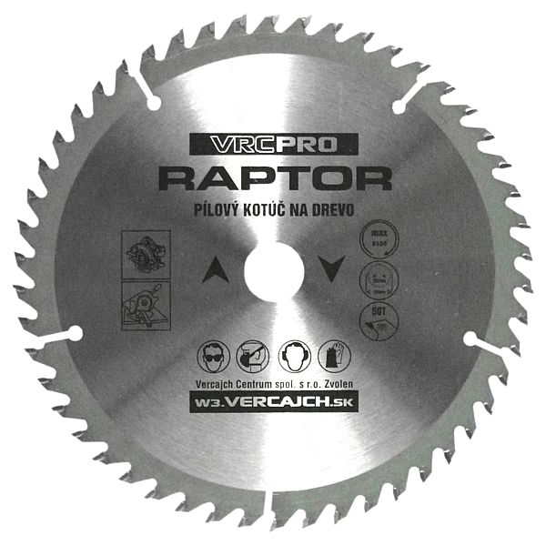 Pílové kotúče VRCPRO Raptor sú určené na rezanie dreva a drevotrieskových – laminovaných materiálov. Sú osadené tvrdokovovými TK plátkami veľmi dobrej kvality, ktoré spĺňajú všetky parametre podľa predpísaných noriem. Tento kotúč znesie zaťaženie pri práci remeselníkov.